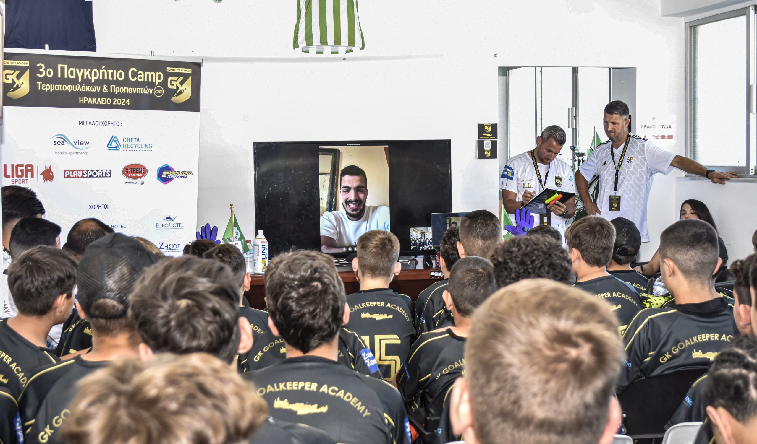 Όπως και στο Λασίθι, διαδικτυακό… παρών στο Camp έδωσε και ο τερματοφύλακας της 2ης ομάδας της Οσασούνα, Δημήτρης Σταματάκης, ο οποίος με την ομιλία του ενθάρρυνε κι ενέπνευσε τους νεαρούς goalkeepers!