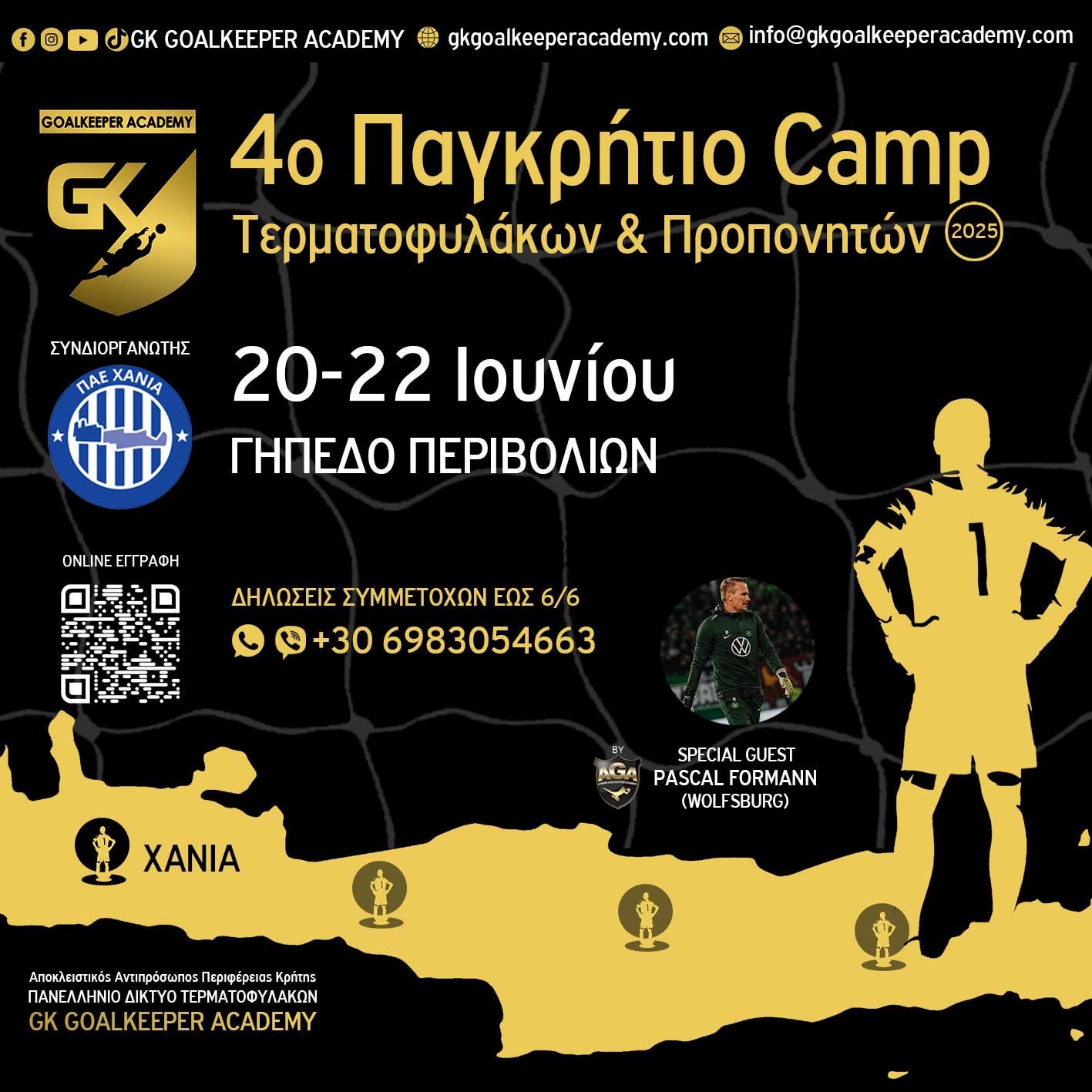 4ο Παγκρήτιο Camp Τερματοφυλάκων & Προπονητών: Με τον Pascal Formann της Wolfsburg και το κορυφαίο προπονητικό επιτελείο στα Χανιά!