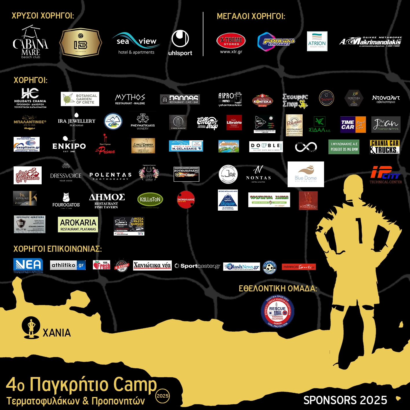 Η GK Goalkeeper Academy ευχαριστεί θερμά όλους τους συνεργάτες, χορηγούς και υποστηρικτές για την πολύτιμη συνεισφορά τους στο Camp των Χανίων.