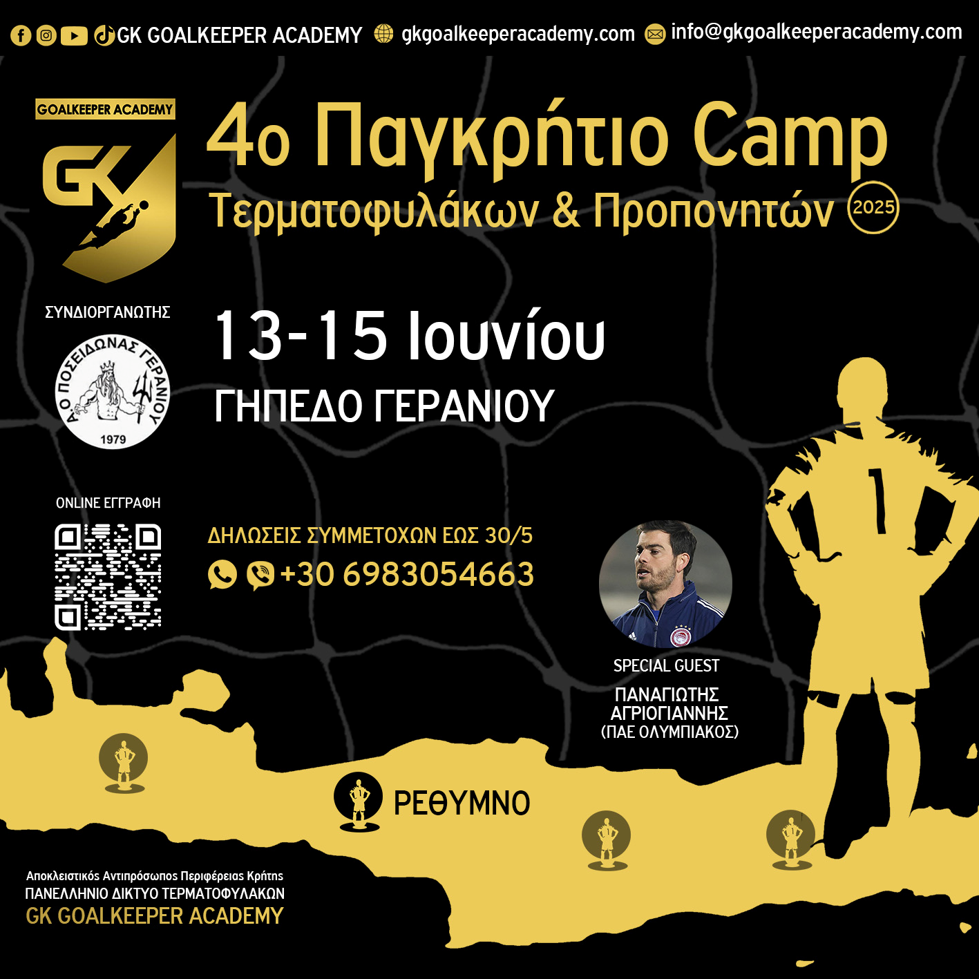 Το μεγαλύτερο Camp της Κρήτης, ένα Camp υψηλού επιπέδου, σχεδιασμένο για να προσφέρει πολύτιμες γνώσεις, εμπειρίες και ευκαιρίες σε νέους goalkeepers και προπονητές!