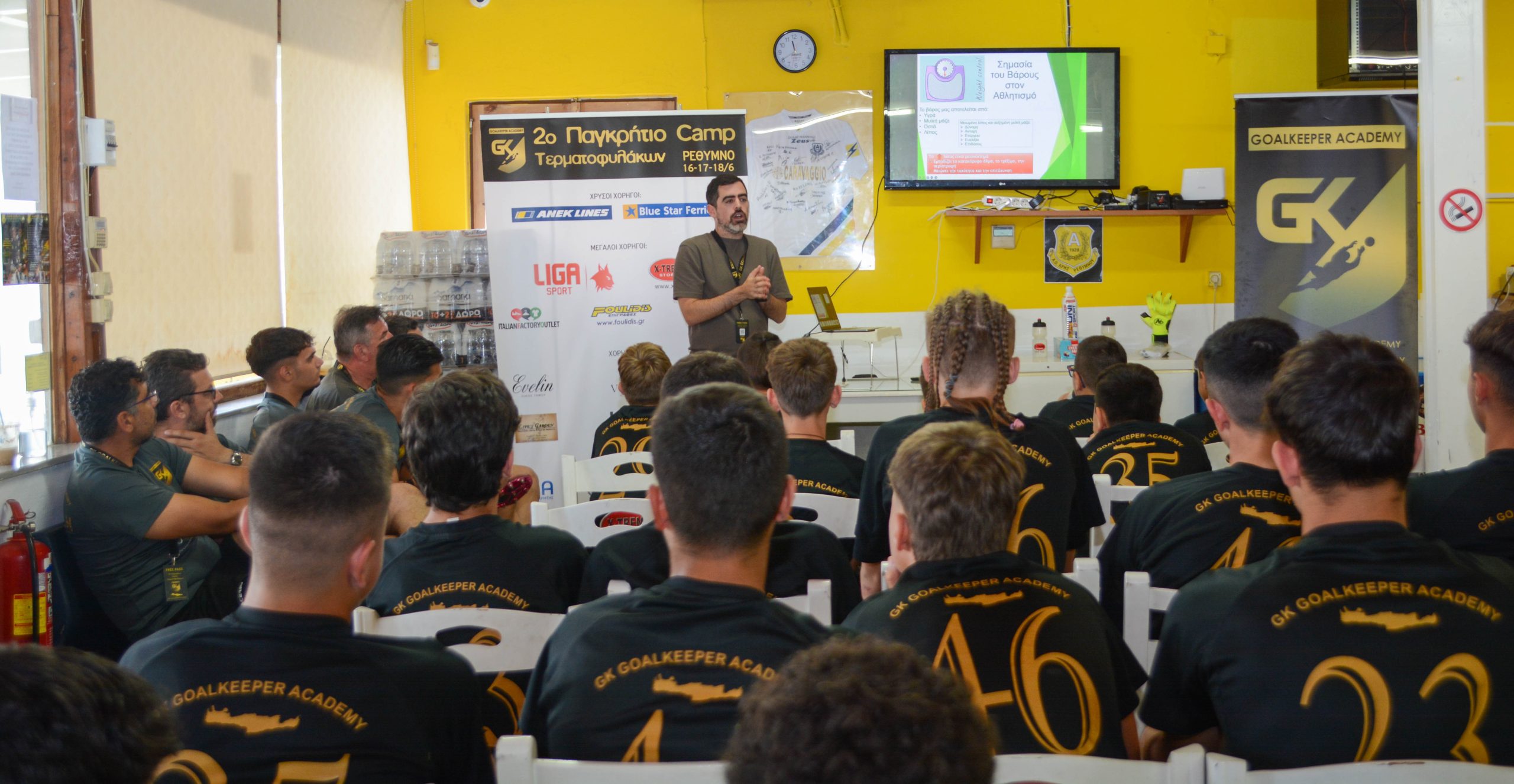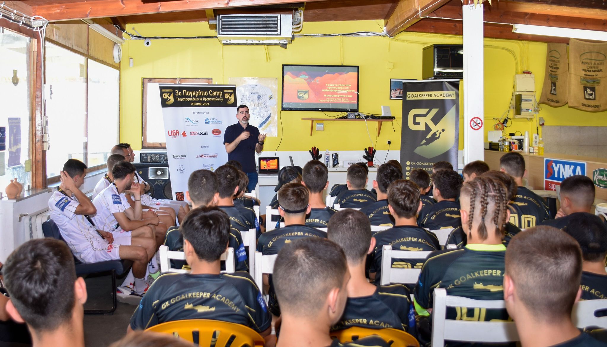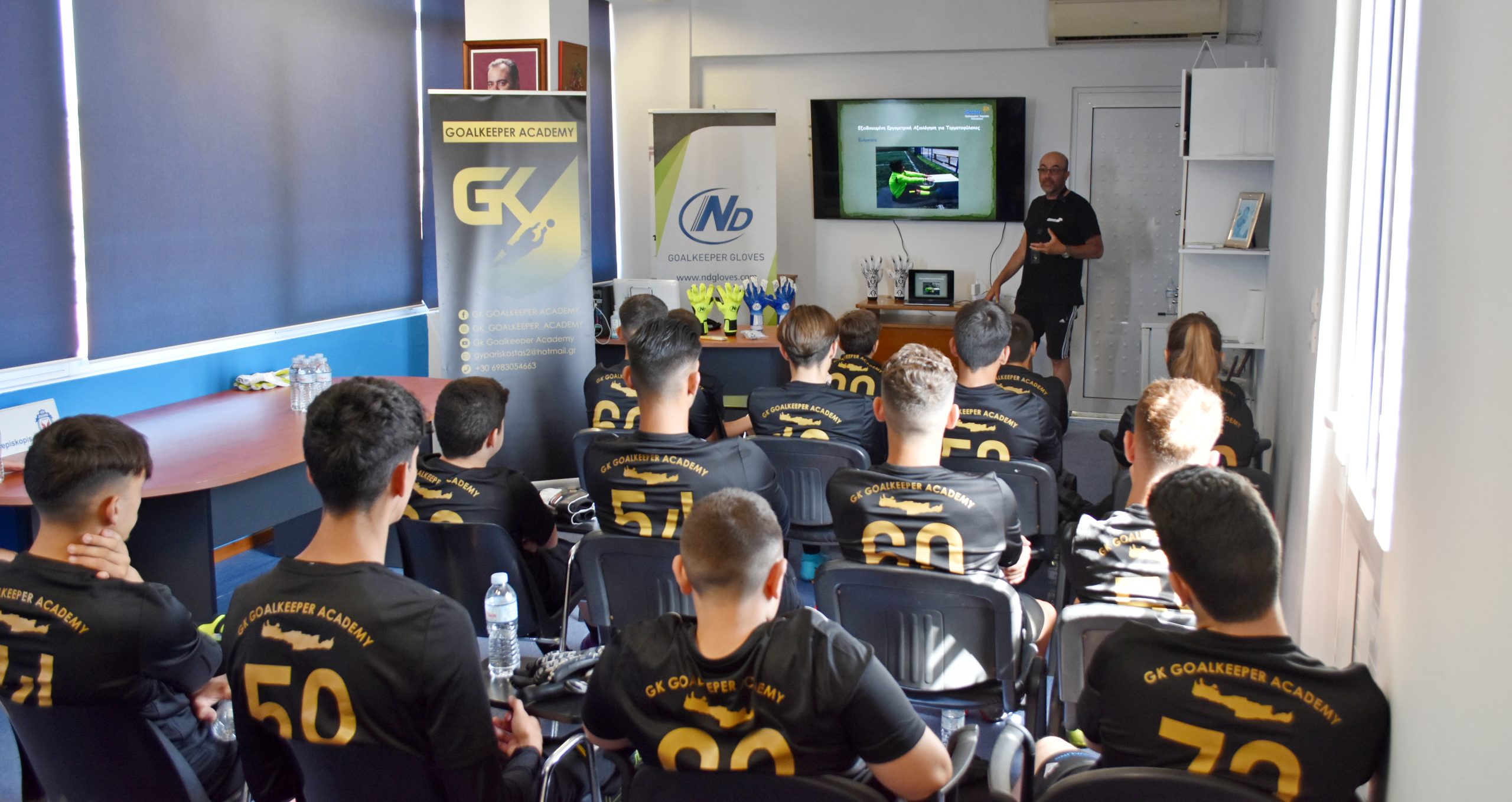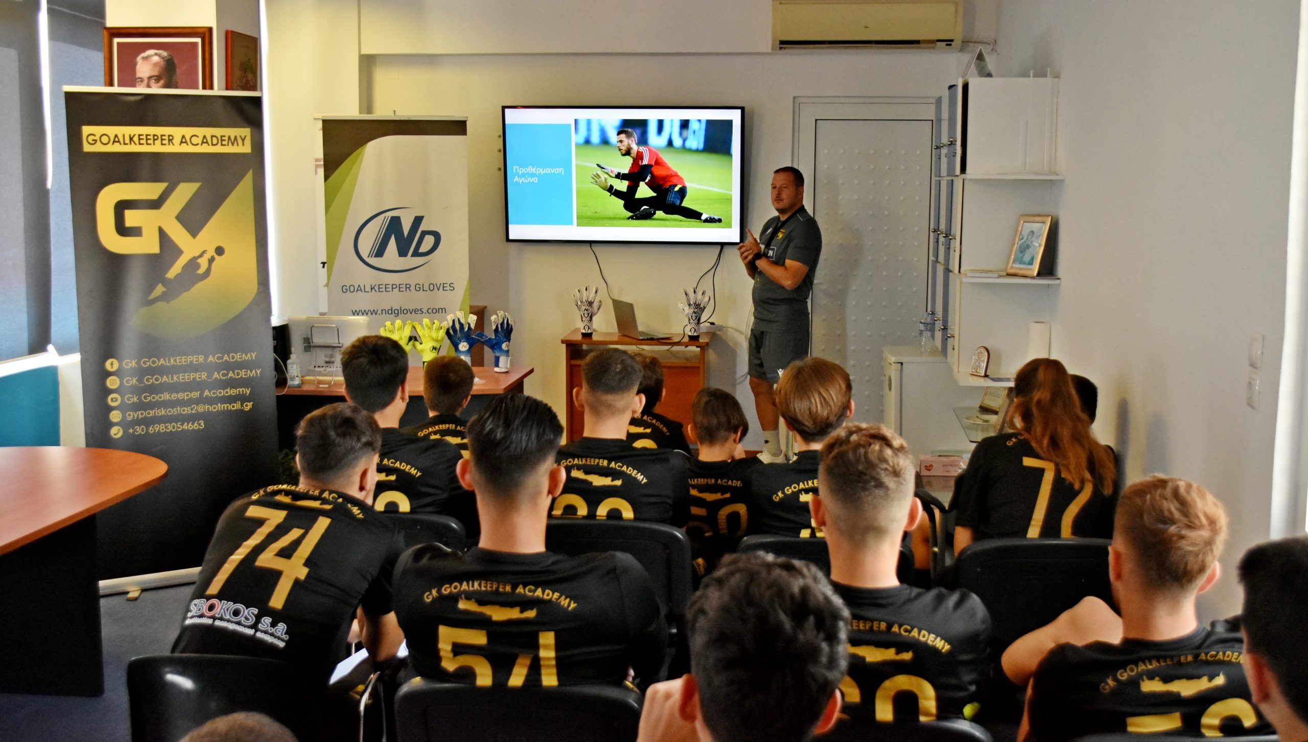 Το εκπαιδευτικό πρόγραμμα στην αίθουσα ολοκληρώθηκε με την παρουσίαση του Επικεφαλής της Ακαδημίας, Κώστα Γύπαρη, με θέμα: ”Διδασκαλία/εκπαίδευση τεχνικών του τερματοφύλακα”.