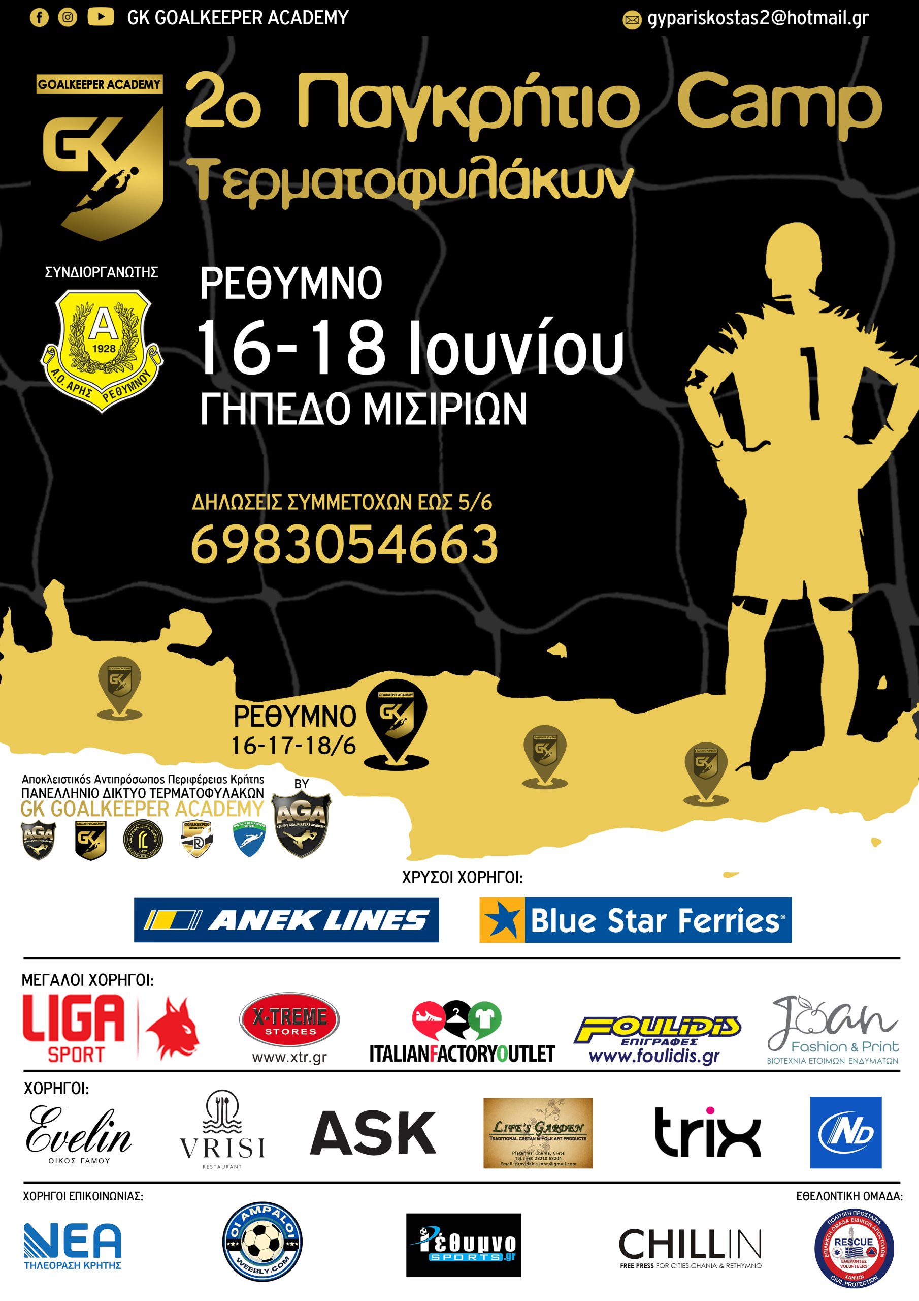 Η GK Goalkeeper Academy ευχαριστεί θερμά όλους τους συνεργάτες, χορηγούς και υποστηρικτές για την πολύτιμη συνεισφορά τους στην επιτυχημένη διεξαγωγή του Camp του Ρεθύμνου!